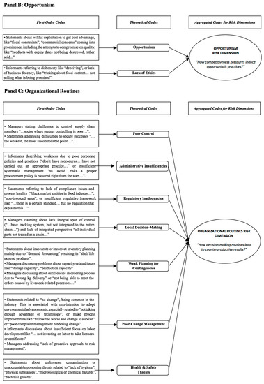Interview managers repeatedly related that competitive pressures induce exploitive practices and “corner cutting” across the food production and delivery supply chain. Thus, a separate category of risks was created. Specifically, behavioral risks focus on day-to-day operating behaviors. By contrast, opportunism risks focus on ethical practices. As the quotes in Table 5 illustrates, opportunism manifests as excessive self-interest that violates ethical rules and moral conduct. Managers specifically noted breaches in honesty, fairness, integrity, equity, and legitimacy. In extreme instances, blatant pursuit of self-interest leads to ethical violations and non-compliance with rules for the public welfare [13,67].