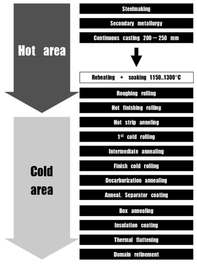 - Xia, Z.; Kang, Y.; Wang, Q. Developments in the production of grain-oriented electrical steel. J. Magn. Magn. Mater. 2008, 320, 3229–3233. [Google Scholar] [CrossRef]