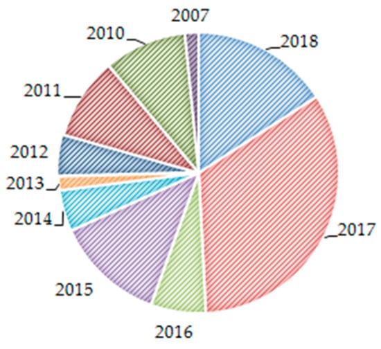 Figure 2 indicates that the range of studies is from 2007 to 2018 (with the exception of 2008 and 2009). It is quite clear that bioenergy has been frequently discussed in recent years and soared from 2015 onward, compared with the earlier years. It can thus be inferred that with the increasing concerns on climate change, bioenergy has encountered opportunities for its scale deployment.