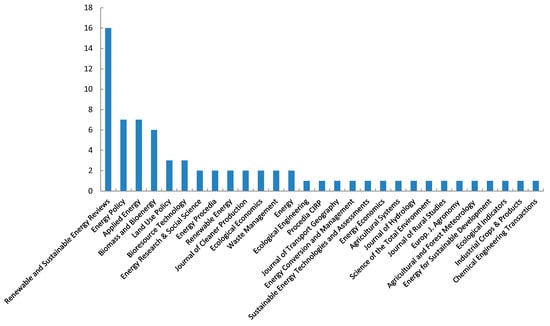 Moreover, if analyzed from the distribution of published journals, it is interesting to find that target studies can be obtained in a wide range of journals while journals related to sustainability and/or bioenergy (e.g., the first four journals in Figure 3) no doubt take up a much higher proportion.