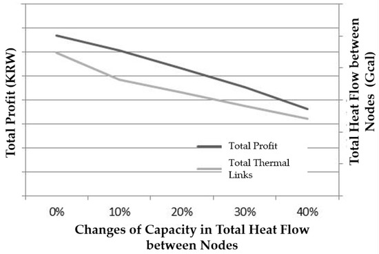Figure 3. Changes in total profit due to the reduction of heat flow.