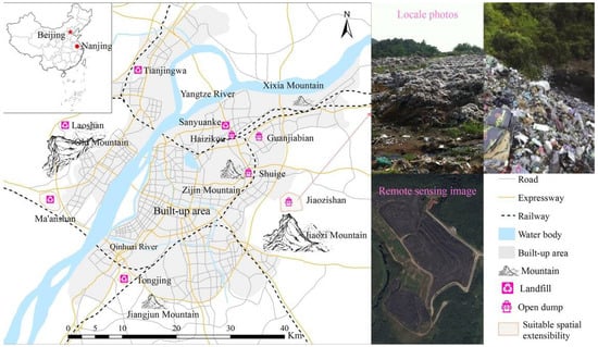 Location and landscape characteristics of five regular landfills and four open dumps in Nanjing.