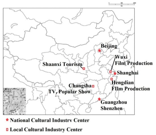 Figure 1); in the East, Beijing and Shanghai are the cultural centers with fully filled cultural industries, and film production is booming in Zhejiang and Jiangsu Province [