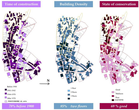 The assessment of the energy quality of the building heritage on a territorial scale, considering the time of construction, the building density, and the state of conservation, is the precondition for implementing an integrated planning of retrofit interventions on an urban scale (Figure 3).