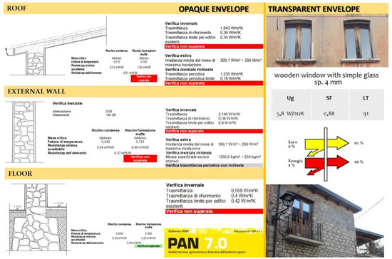 In this work, great attention has been given to the study of the envelope as a combination of design, technological and installation approaches, so that at the same time, it may comply with compositional, structural, and technological requirements in addition to energy, enjoyment, and functional ones. From a more strictly energetic point of view, the standard UNI TS 11300—part I highlights the different factors that are meaningful for the envelope analysis: