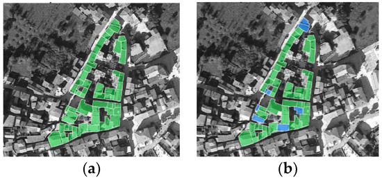 The results obtained from the study of the collapse mechanism can be compared with the results of the damage maps. The overturning mechanism is especially active for taller buildings, which in most cases correspond to those more vulnerable and more likely to develop damage. The realisation of damage maps and the study of failure mechanisms allow the identification of areas of building heritage where a seismic event can develop major damages [36,37]. This can guide the municipality administration towards the implementation of retrofitting interventions performed before or after the seismic events [38].