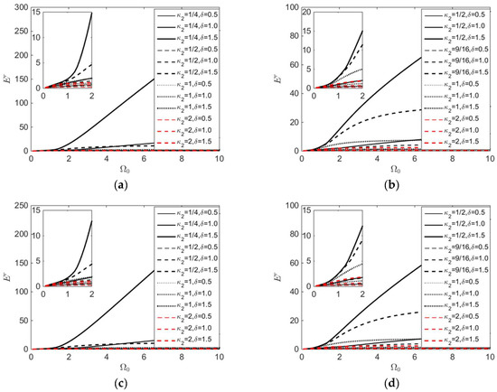 Variations of restoring force error amplification factor with respect to : (a) ; (b) ; (c) ; (d) .