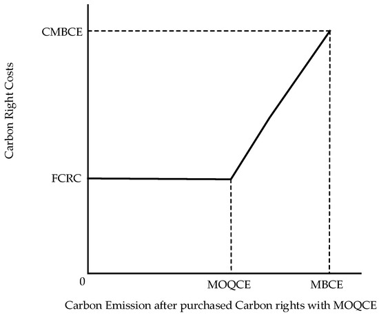 The carbon emissions cost may include the carbon tax cost imposed by the government and the carbon rights cost (CRC) from carbon trading. A company’s CE quantity may be limited by the government’s contribution of a certain permit to the company under a cap-and-trade system [74]. Carbon trading is an effective way to resolve limitations on CE quantity and help the company expand its CE quantity through purchasing carbon rights (CR) in the market.