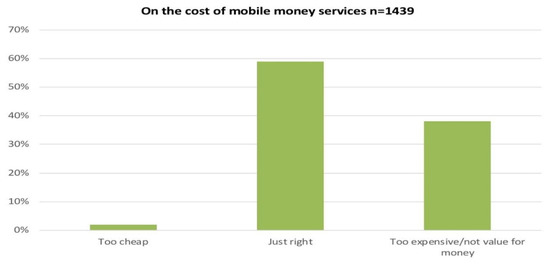 Thus, upon introduction of any new technology, it is important to know the level of consumer satisfaction. With regard consumers preference on the use of mobile financial services channels available in Tanzania, 6 in 10 consumers were satisfied with the mobile money services on the aspect relating to cost of mobile money services while about 4 in 10 consumers attributed mobile money services as too expensive or not having value for money (Figure 5). This satisfaction may be attributed to a sense of no other readily available alternative, and that mobile banking is far better than traditional banking; appreciation is expected. This finding sends a clear signal to MNOs on the need of further improvements to their services regarding cost and access. In addition, the dynamics of the industry may push them into irrelevance if far better alternatives for financial delivery services evolve.
