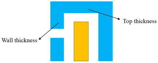 There are two main factors influencing the detection efficiency of the annular detector: material and geometric structure. Since the materials, BGO crystal and plastic scintillator, have been determined, this study mainly analyzed the effect of specific geometric parameters on the anticoincidence between the main detector and the two annular detectors. Two main geometric parameters, wall thickness and top thickness, as shown in Figure 4, were varied. The other dimensions were as given in Section 3.1.