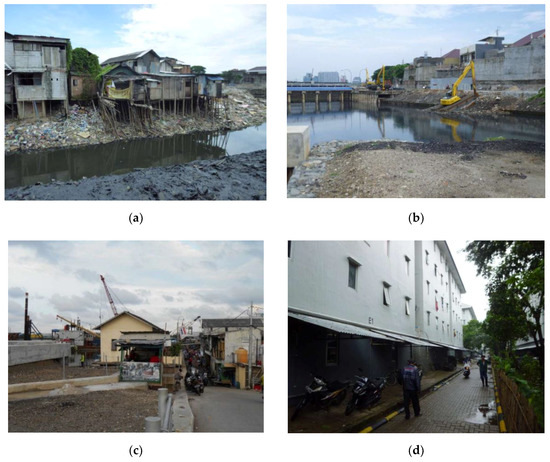 As all of these measures need space, a significant amount of resettlement has been necessary over the past years (Figure 3d). The vast majority of affected dwellings belong to low-income households which had been settling informally on the banks of rivers and reservoirs, given their lacking financial and institutional capital to access land in other parts of the city. The regulation of the Ciliwung alone triggered the resettlement of 15,000 people, i.e., 4000 households, over the last five years.