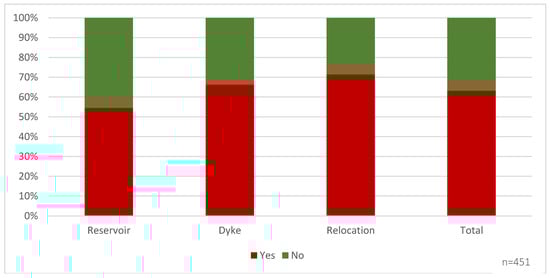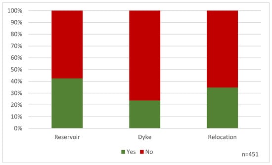 Moreover, the survey results clearly show that households affected by formal adaptation measures in most cases felt cut off from information and disempowered or voiceless with respect to the design, planning, and implementation of the adaptation measures. Even more so, Figure 8 illustrates that most of the affected households have not even been receiving information on the implementation of the project. These findings are in line with other empirical studies which also found that the opportunities for participation has been weak amongst the population in Northern Jakarta affected by formal measures of coastal protection and flood risk reduction [24].