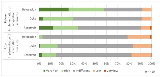 Perceived self-capacity to cope with future floods before and after the implementation of adaptation measures.