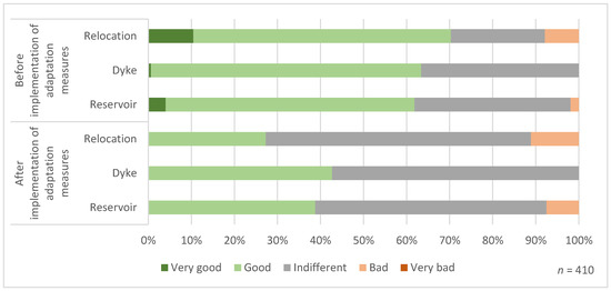 Perceived quality of mutual assistance within the neighborhood before and after the implementation of different adaptation measures.