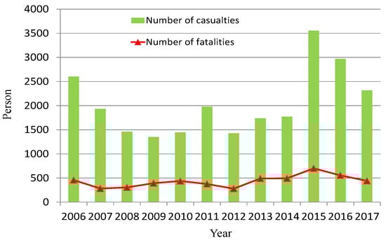 - Based on the probability analysis of casualty accidents, it is highly likely that 200 to 600 casualty accidents will occur each year in China. Thus, to reduce the occurrence of accidents, preventive measures should be taken. Moreover, building a resilient system is necessary for responding to unanticipated disturbances and resuming normal operations quickly [43,44].