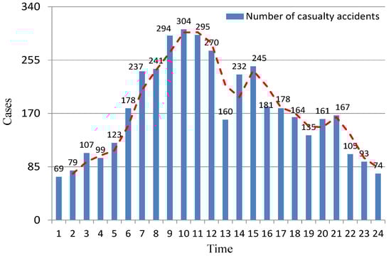 - Based on the analysis of time distribution of casualty accidents, we argue that safety management efforts should be devoted to spring and summer and 9:00–10:00 am and 2:00–4:00 pm during the day.