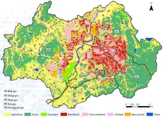 Land use and land cover of Gwangju Metropolitan City.