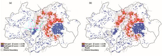 As mentioned above for Table 2, annoyance was supposed to be more severe than sleep disturbance, based on the total number of the affected population, estimated at the district level. However, although the statistics is not provided here, the hot- and cold-spot analysis in Figure 10 showed that the road traffic noise of the GMC had a more adverse effect on sleep disturbance than annoyance.