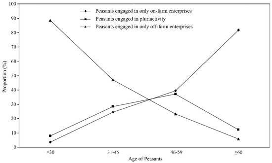 Younger peasants who are male and have a higher education level are more likely to engage in only off-farm work, and the peasants with the opposite characteristics are more likely to engage in only on-farm enterprises. Thus, the engagement of older peasants in only on-farm enterprises, and their subsequent earning of a lower income, is mainly due to the lack of human capital. However, increasing the human capital of this group will be an arduous task. Furthermore, these older peasants will have to give up small-scale agriculture in the next few decades, while the proportion of peasants aged 30 or younger and engaged in on-farm enterprises only accounted for 11.5% of the total peasants of the same age in 2014. Therefore, in order to reduce rural income inequality and sustain agricultural production, the Chinese government should design effective policies to make farming an appealing livelihood choice, particularly for the younger generation.