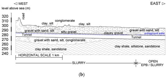 Conventional methods of tunneling such as drill and blast mining or mechanical excavation in the context of the NATM—New Austrian Tunneling Method (i.e., Spread Concrete Lining method) were considered as part of this study. However, due to extremely difficult and complex geological and hydrogeological conditions explained in the previous section, the conventional mining methods, and the cut-and-cover method, failed the criteria of build-ability at acceptable costs and were ruled out. Due to its advantages compared to the conventional tunneling methods, the TBM technology, which is used worldwide for tunnel construction in urban environments (most commonly for the construction below the ground water table and in very diverse geological conditions), was regarded applicable and feasible for the Ljubljana Basin. Also, TBM technology was considered the most appropriate regarding the long-term effects of tunneling on the natural hydrogeological system, as the fully sealed variant ensures no interference with the water supply zones critical to Ljubljana. For this reason, only the TBM technology was considered in detail, as presented in the following.
