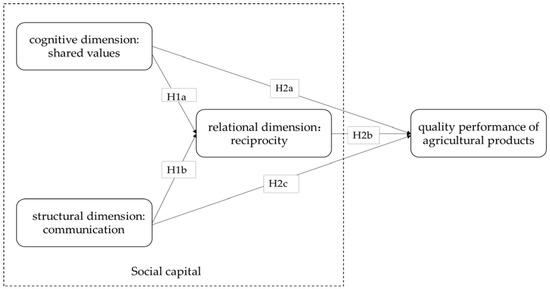 In summary, based on the social exchange theory, this study constructs a theoretical model (see Figure 1), and proposes five hypotheses regarding the three dimensions of social capital and quality performance of agricultural products.