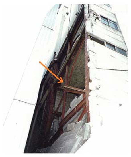Diagonal brace collapsed in the 1995 Hyogoken Nanbu earthquake [23].