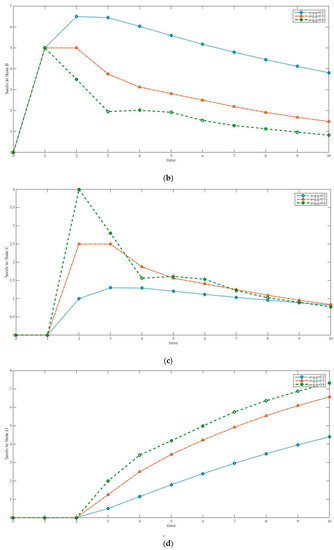 State D is an absorbing state. The interactive seeds entering into this state will always stay in it. It is also the optimal state of knowledge interaction we expect to achieve. Hence, , .