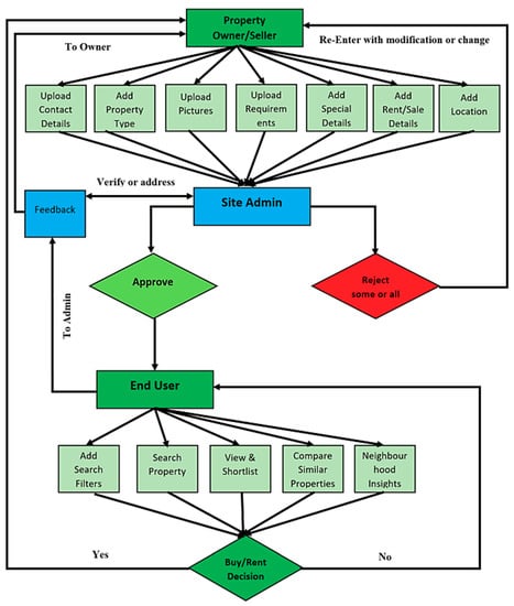 Once a website’s requirements are completed, an administrator can approve or reject some or all the features. In the case of rejection, the owner must modify the property or its details, or upload missing components. In the case of approval, the property becomes visible to potential buyers or renters. Consumers use online filters to find properties that meet their requirements. The website displays properties that match these requirements and generates a shortlist or selection. Consumers can also provide feedback or demand further information of the property owner. In the latter case, the request is sent first to the administrator, after whose approval it is forwarded to the property owner and vice versa before a deal is finalised. Thus, while technology is important, the dissemination mechanism occupies a critical position.