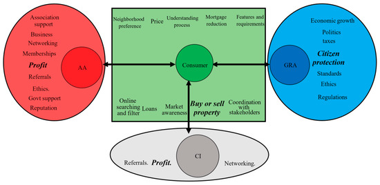Although the scope of SRE is vast and covers many domains, the current study focuses on buyer-seller interactions and the disruptive technologies that can improve them. Based on a review of literature about online real estate searches, such as the work of Grant and Cherif [46], Rae and Sener [47], and Rae [48], consumers’ online behaviour can be summarised by Figure 1. It illustrates the mechanism for posting a property online and how potential consumers search, view and select properties. It also shows a number of requirements for a property to be posted online.