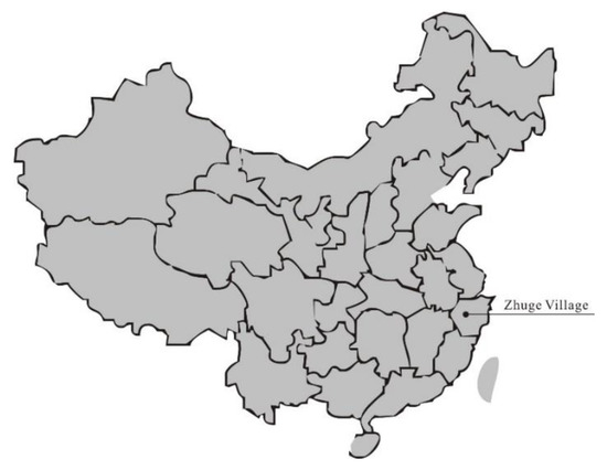 Zhuge Village is located in the hilly area of the middle Zhejiang province (Figure 2). Around 10 miles north of Zhuge Village, there are Tianchi Mountain and Daci Rock (大慈岩); on the west, Xian Mountain winds around 4 miles; on the east of the village, a few small hills run northsouth; and on the south of the village, there is “Jingtanghou Hill”. These mountains form a unique geographical environment for Zhuge Village. The village lies at the bottom of a “pot”, with higher ground all over the village. Because of this, rivers are not able to run through the village. Thus, many ponds and wells were dug throughout the village. The altitude of these hilly mountains are between 68 to 92 m. From the overview, the whole village face southeast, with its back facing northwest [26].