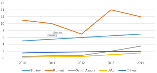 The major hellim/halloumi export countries are Kuwait, Saudi Arabia, and Turkey (Figure 3), where hellim/halloumi is known, and the exports significantly increased since the Cyprus Turkish Chamber of Industry obtained the geographic indication of hellim/halloumi, allowing for production only to take place in Cyprus.