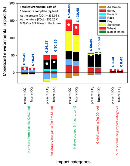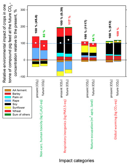 - The four most important environmental impact categories in pig feed production under current and future atmospheric CO2, as determined by the stepwise normalization methodology, were human toxicity in terms of non-carcinogenic toxicity and respiratory inorganics, natural occupation, and global warming.