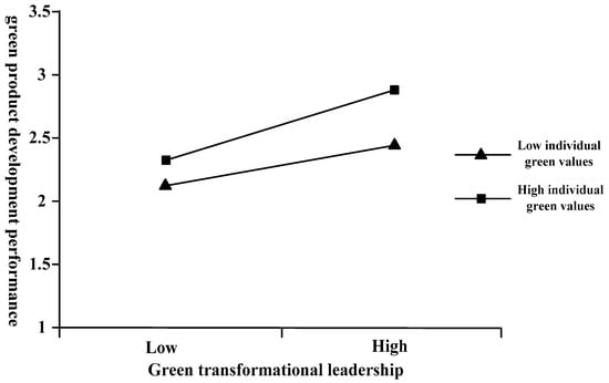 The interaction between green transformational leadership and individual green values on green product development performance.