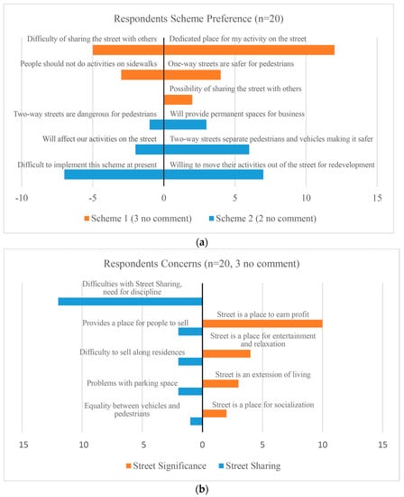 Responses regarding: (a) Scheme Preference and (b) Street sharing and Street Significance.