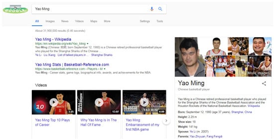Yao Ming” will also be presented on the right side (e.g., date of birth, place of birth, height and his wife). Such comprehensive returned results rely on the background knowledge graph. Compared with the traditional keyword matching-based web search, knowledge graph-based semantic search can better understand users’ query intents, thus providing more concise and intelligent search results. For example, when searching “