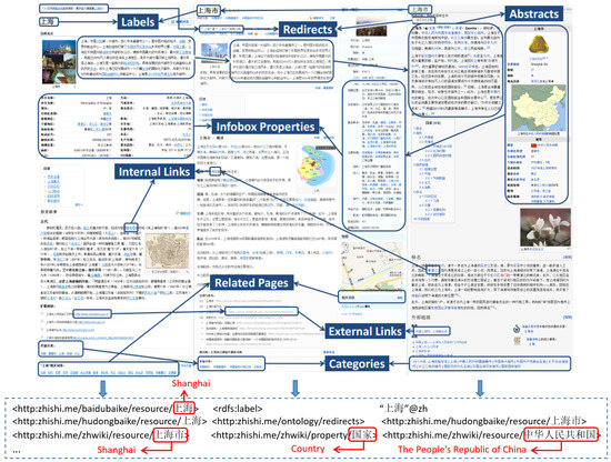 Figure 6, Zhishi.me extracts entities and their related knowledge from structured data (e.g.,