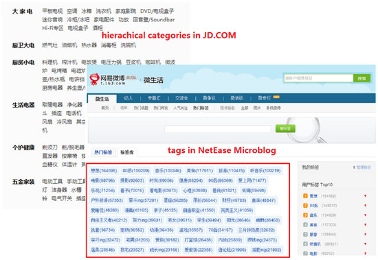 Figure 7) for schema-level knowledge mining, i.e., discovering semantic relations among categories and tags.