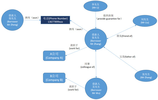 Figure 14, in the scenario of the anti-fraud intelligence analysis, we can build an intelligence knowledge graph by fusing the information from different data sources and adding business rules established by domain experts. Potential fraud risks can be identified through data inconsistency detection in the knowledge graph. For example, borrower Mr. Zhang and borrower Mr. Wu claimed that they are colleagues when filling in their personal information, but the company names they filled are different. Besides, the phone number of Mr. Zhang also belongs to another borrower Mr. Zhen. These inconsistencies indicate the potential fraud so that the bank will decline the requests of loan respectively from Mr. Zhang, Mr. Wu and Mr. Zhen. In addition, knowledge graph has already been applied in many other kinds of intelligence analysis to assist decision making such as police intelligence analysis, stock intelligence analysis, etc.