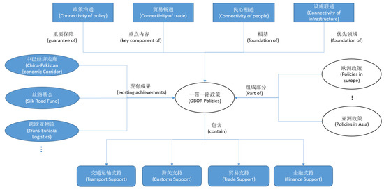 Figure 16. After the OBOR initiative was proposed, Chinese government has published a lot of policies in different occasions, such as international conferences, press conferences, official announcement and so on. We can utilize natural language processing techniques to extract entities and relationships from these policies and use them to compose an OBOR knowledge graph. In this way, the information related to OBOR policies, which is distributed over different sources, is integrated together.