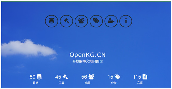 Figure 18), a Chinese open knowledge graph community, aims to promote the open access and interconnection of Chinese knowledge graphs. So far, there have been 56 institutions from industry and academia contributing their own knowledge graphs. It has attracted 80 high-quality knowledge graphs in total including Zhishi.me, CN-DBpedia, XLORE, etc., and covers 15 different kinds of knowledge graphs such as encyclopedia, finance, health care, agriculture, business, social network, etc. Besides, there also 45 different open tools used for knowledge graph construction, integration, completion and reasoning. OpenKG integrates the most abundant knowledge graph resources in China.