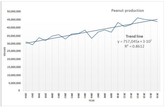 - Hammons, R.O.; Herman, D.; Stalker, H.T. Origin and early history of the peanut. In Peanuts; Elsevier: Amsterdam, The Netherlands, 2016; pp. 1–26. [Google Scholar]