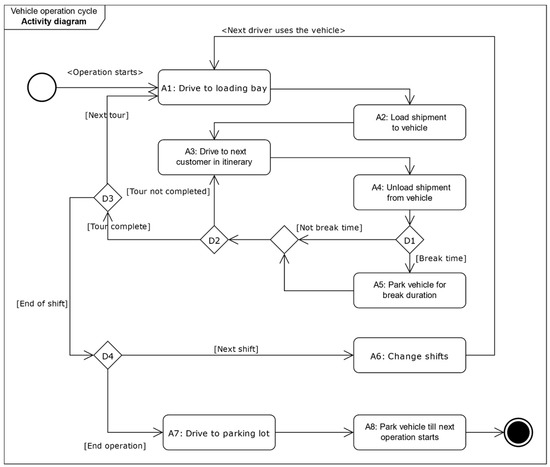 Activity diagram of vehicle operation cycle.