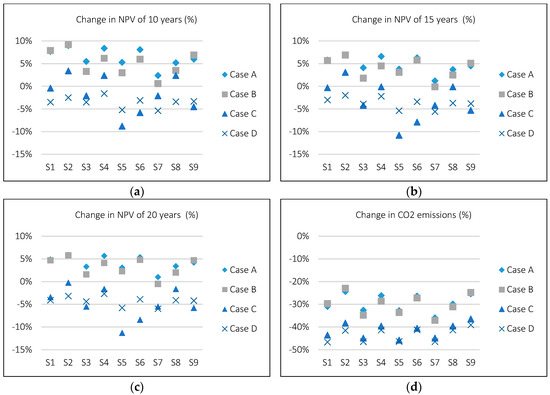 Also, unsurprisingly the business case depends on the variation of the electricity prices (Rows 12–15, Table 11). The strongest effect is found in Case C, which also has highest energy usage and cost compared to the other cases (compare Figure 5 and Figure 6). This implies that operational characteristics resulting in high energy cost savings take precedence in improving the business case before the reduction of electricity prices.