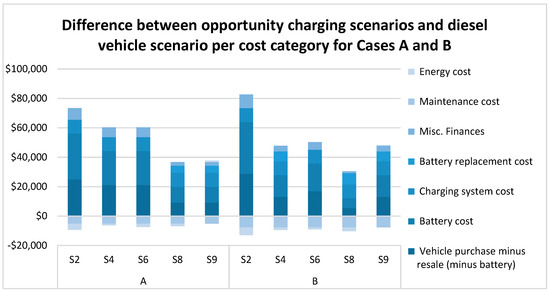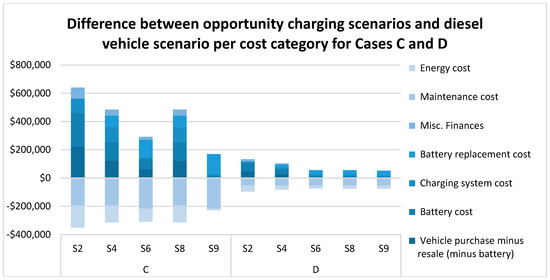 The puzzle remains as to why Cases A and B performed poorly financially compared to Cases C and D. One potential reason is the unused battery capacity of the fleet. In the study, the fleets for Cases A and B were taken to be homogeneous in terms of battery capacity and vehicle weight. The battery capacity was sized according to the need of the limiting vehicle, which had the highest workload measured in energy consumption. This meant that those BEVs with a lower workload did not fully utilize the potential cost savings from the lower energy and maintenance costs associated with driving distance range.