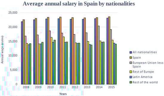 Figure 3. Average annual wage in Spain by nationalities. Source: authors’ own elaboration based on INE data.