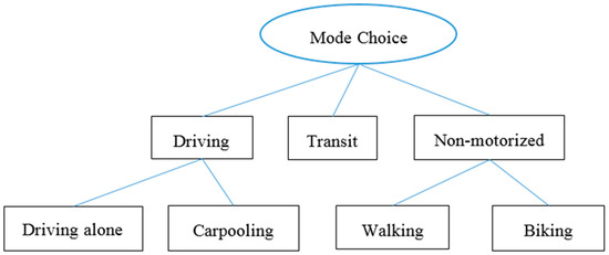 In the large volume of literature on mode choice, scholars [2,3,16,17,18,19,20,21,22,23,24,25,26,27,28,29,30,31,32,33] have identified six general groups of factors that individually or collectively influence people’s mode choice. The six groups of factors are: