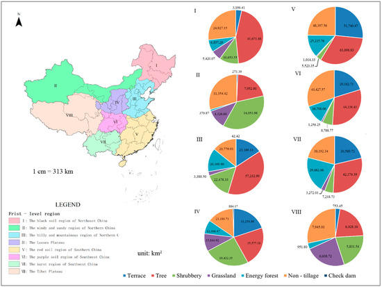 Different combinations of soil conservation measures in the eight first-level regions. Source of data: Report of the first national water census of China [48].