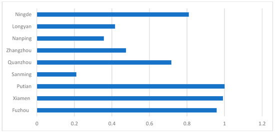 Industrial Eco-efficiency of various cities in Fujian province.