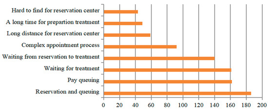 In addition, we find that the four processes with the lowest degree of satisfaction are matched with the corresponding waiting time. Thus, we can conclude that one of the core problems in the process of making an appointment is the waiting time (shown in Figure 5).
