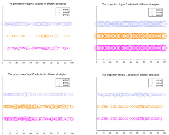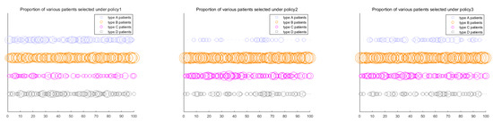 Strategy 2 (or policy 2) tends to select type B patients (appointed inpatients) and type C patients (appointed outpatients). This is because strategy 2 is formulated from the perspective of the hospitals’ revenue target. The economic benefits of receiving type B patients is the highest, and the cost of rejecting type C patients is the highest. From the perspective of hospitals’ economic benefits, since the economic benefits brought to the hospital by type A and type D patients are relatively low, fewer patients of these two types would be selected by the hospital.